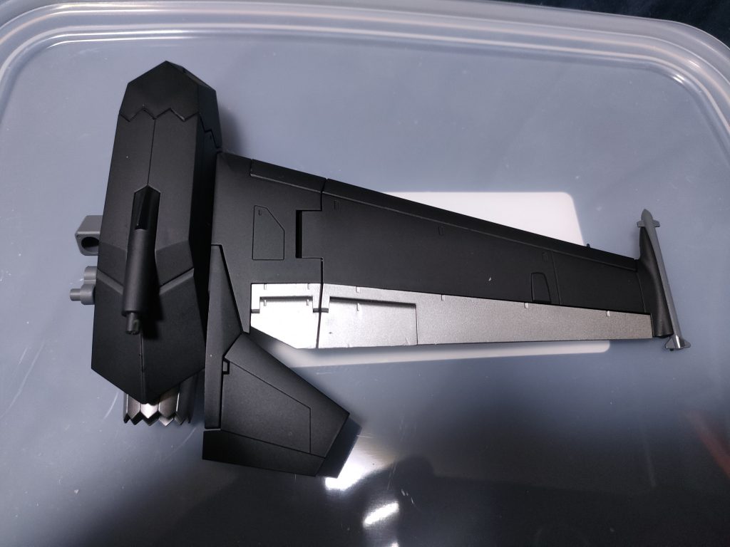 左右ウイングはパイロンが稼働する為、基本の色を黒と銀にしつつパイロン展開時に露出する部分に差し色として赤を入れてみました。