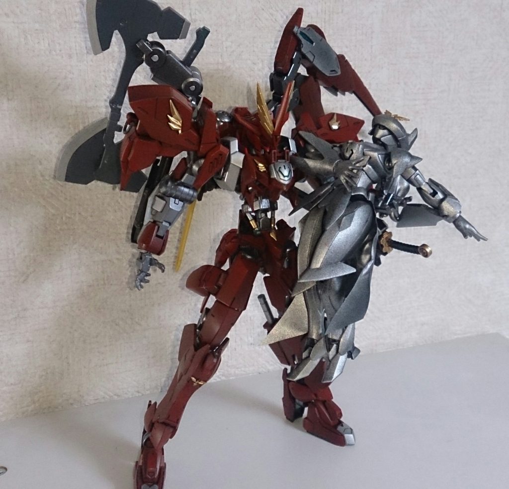 こちらはグレイズアインとバエルのミキシングとなり、アニメ初登場時のスマートなバエルを意識してます。うろ覚えですが、設定や背景ストーリー共々よろしくお願いいたしますm(__)m