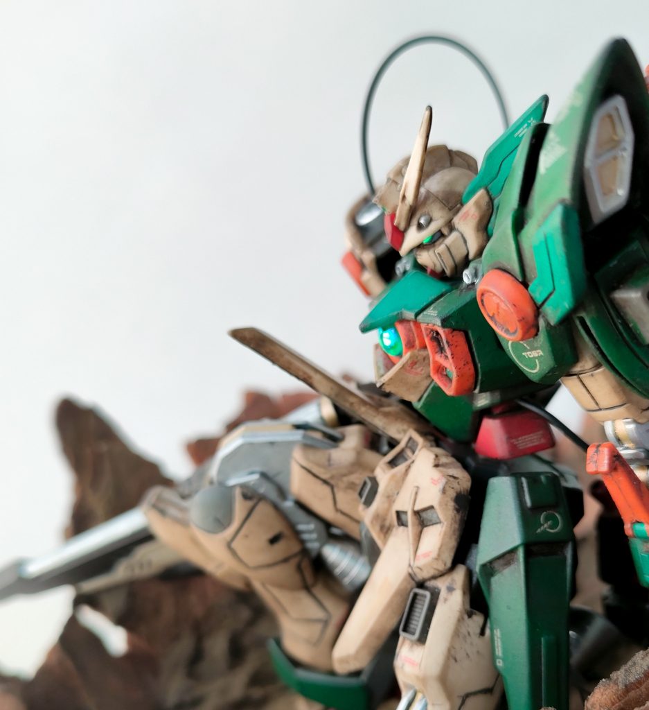 膝立ちでバスターライフルを片手で構える姿は、まさしくボロボロになっても諦めない精神力の強さを表しているようでとても迫力がありますね!