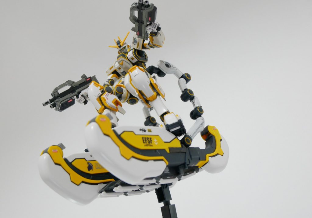 とにかく、武装やオプション装備が豊富だったので、撮影は大変でしたが、バリエーションが豊富で楽しめるプラモです。一部グリップが固定しにくいので、改造しましたが、それ以外はポージングがよくきまりました。