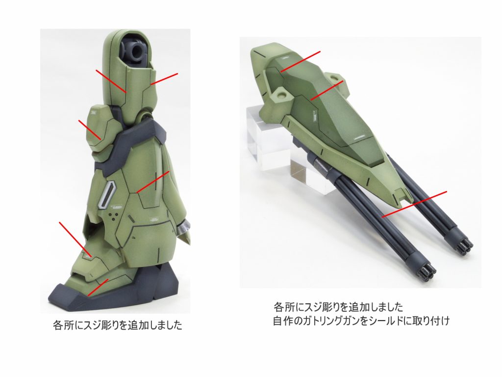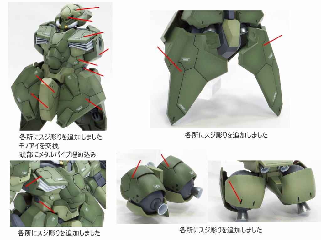 適所にスジ彫りの追加とプラ板チップを埋め込みました。 グラデ…