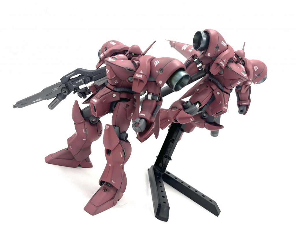 肩のスラスターがとても目立つデザインなので、目立ちすぎない様に肩アーマーにはピンクを2色使ってみました。