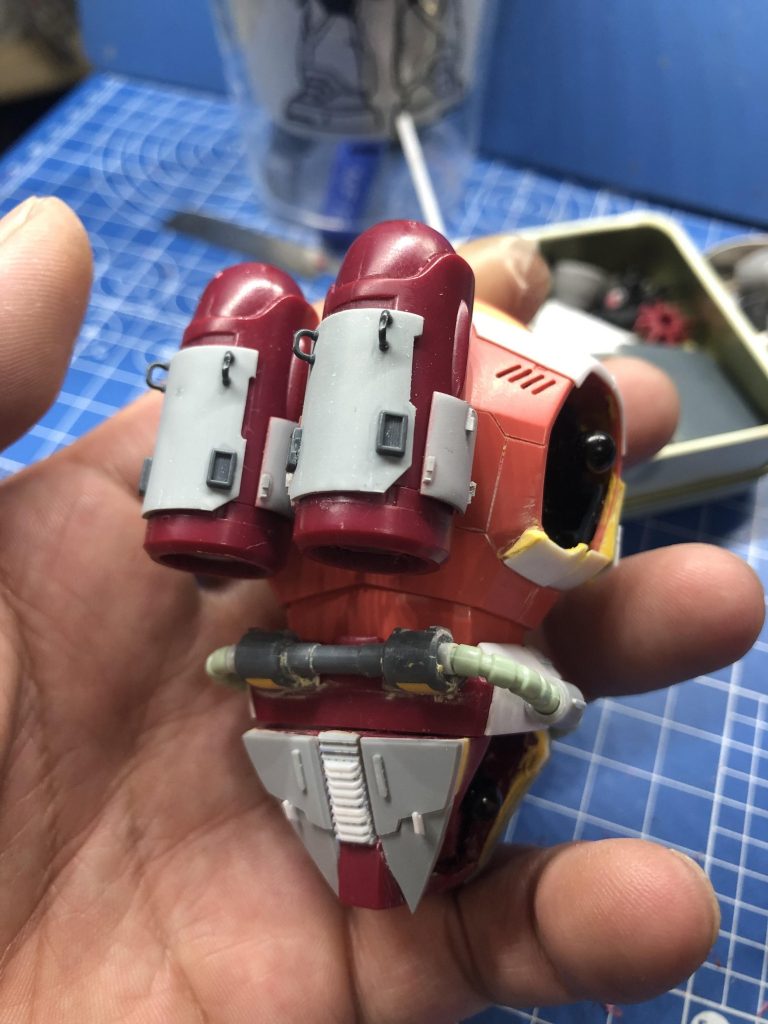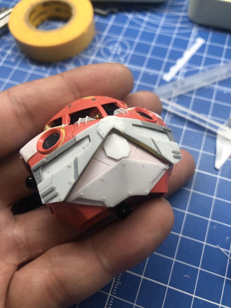 胸部→2.4ミリワイド化、ヒートプレスにて装甲追加、全面はほぼオリジナルに作り直し、スジボリ等