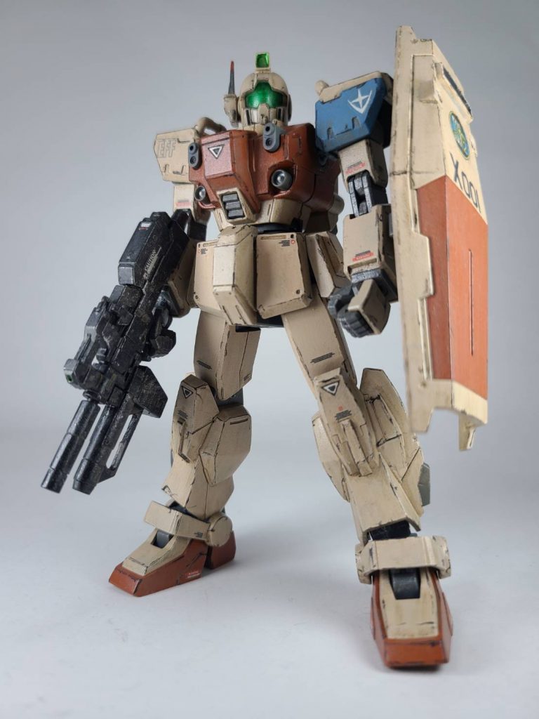 陸戦ジムの雰囲気残しつつも、細部、特に肩アーマーの違いでだいぶ印象が変わってますね。ライフル&シールドも無骨度アップでナイス!!です。