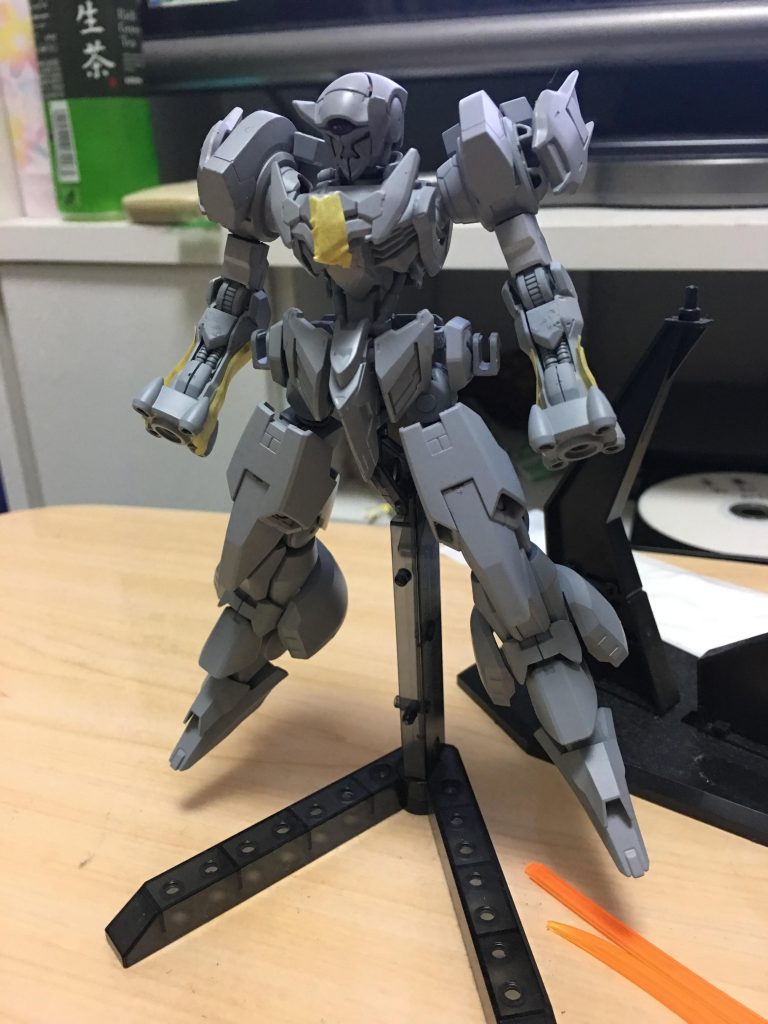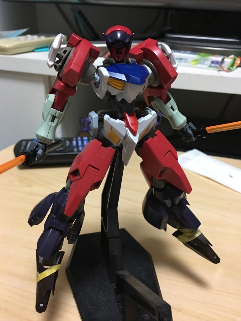 塗装前、腕だけ変わってますが、そのままではガンダムフレームが刃-Xの肩に接続できなかったので長さを詰める作業をしました。