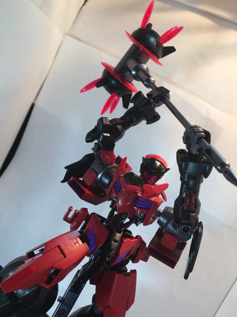 剛鬼は芯の部分が空洞になっていて、ショルダーパーツを芯棒を通して繋げているだけなので、回転や、ビームエフェクトの取り付けが可能です