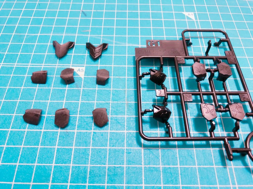 唯一、袖付きの部分だけはヤスリで削って落としました。