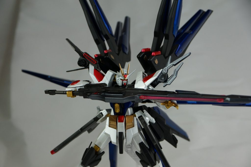 以上、ガンダムウルトラストライクフリーダムでした。色々なことに挑戦して、あまり上手くいかなかった箇所も多い作品ですが、写真では意外と綺麗なので一安心。今後はエアブラシなど様々なことに挑戦しながら、気まぐれに更新していくかと思います。ミキシング主流になるかも? 時間が確保できない可能性がありますが、気長にお待ち頂ければ幸いです。