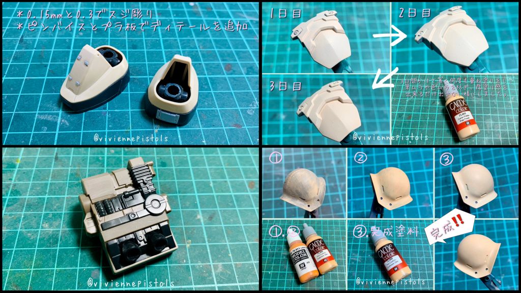 今回の反省点として、スジ彫りラインが荒く目立つ完成となり、"もっと丁寧に、もっと力を入れずにしないと"と反省。