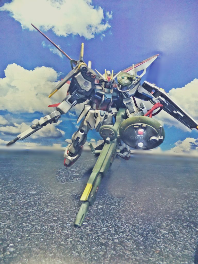 パーフェクトパックだけでも重武装なのですがバンダイ公式オプションパーツのレドーム&センサーセットを流用して超長距離射撃対応型っぽい仕様で製作しました。細部はウェーブのモビルスプリング、ホームセンターで購入出来るガラスチューブ?ジャンクパーツ等でデコレートしています。ソードストライカーの刀身は紛失していますのでご了承ください(汗)