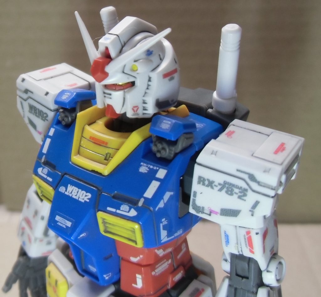 コメントありがとうございます。今回はRX-78-2のデカールを全部使ったわけではなく、ガンダムデカールを貼った後にRG付属のリアルスティックデカールをテキトーに貼り付けてみました。