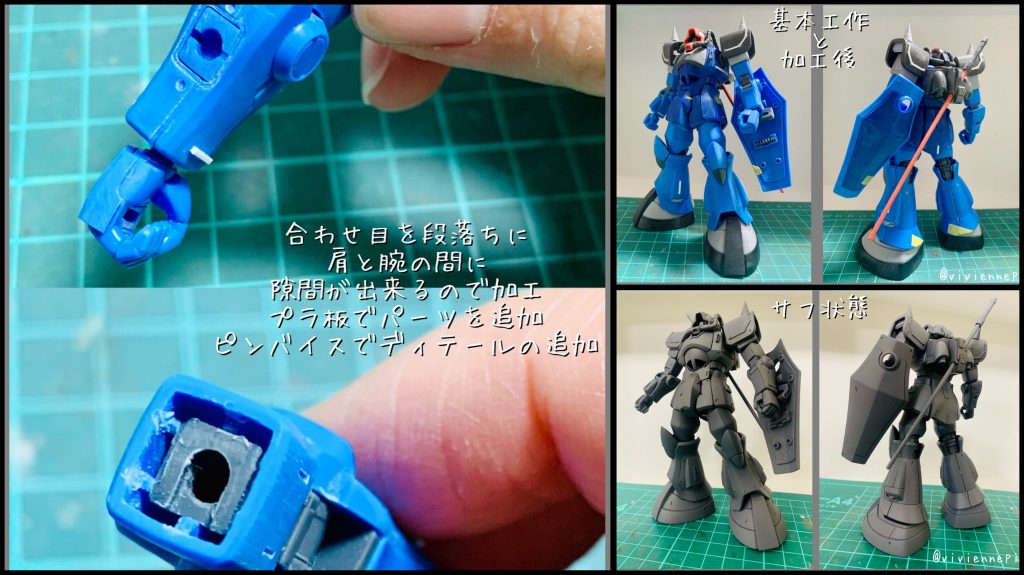 グフ 試作実験機の改良型というオラ設定で制作しました。初めてミキシングにチャレンジしました。