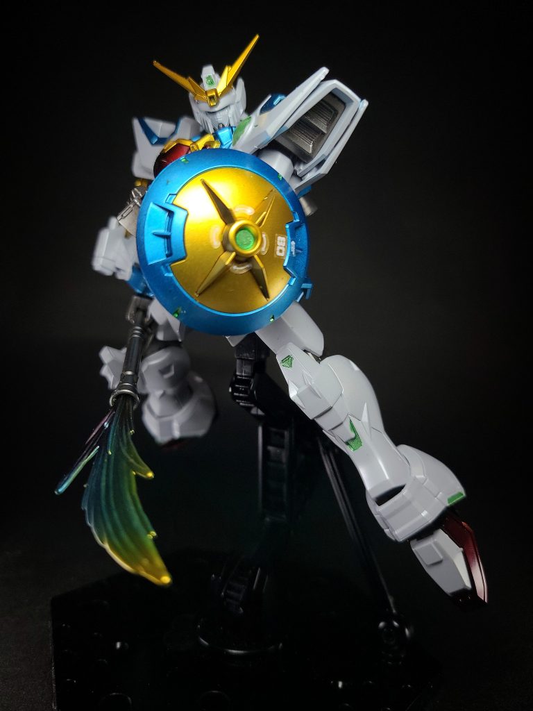 ![シェンロンシールド左前腕装着式の円盤状シールド。接近戦での取り回しを考慮し、小型軽量に造られている[4]。縁は鋭利な形状で、リーオー程度なら盾を投げつけて破壊することも可能[](https://gumpla.jp/wp-content/uploads/2022/09/22-09-24-18-19-15-941_photo-768x1024.jpg)