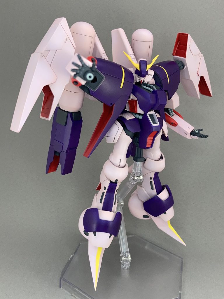 塗装はクレオスのピンクサフ吹いてから、ルージュピンク、パープル→ラベンダー、GXレッド、GXイエローです。グレーはメカサフヘヴィ。