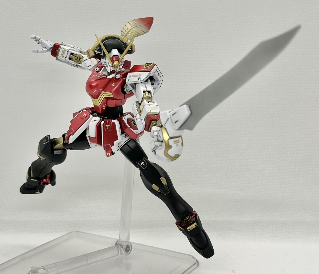HGUCクロスボーンをベースキットにしつつ、一部にRGクロスボーンのパーツを移植する事で部分的にアクション性の向上を図り、ミキシングにより宝鐘マリンのイコンとなっている衣装、装飾も再現しています。