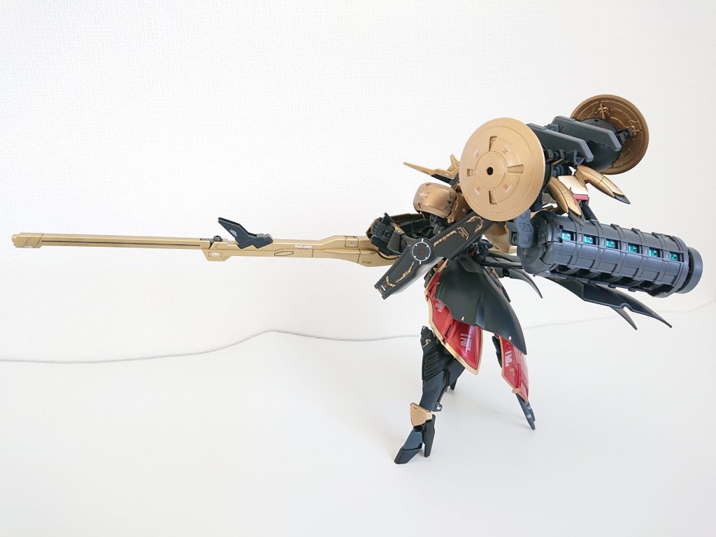フォールディングバスター砲はスローネアインのままですが、加工して三つ折りにできるように。左右の重量バランスの為に、コトブキヤさんのアクティブマインをそのまま拝借。ありがとうございます!!