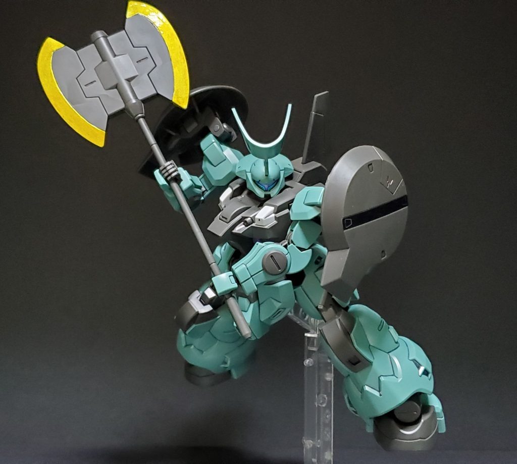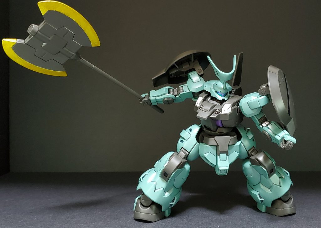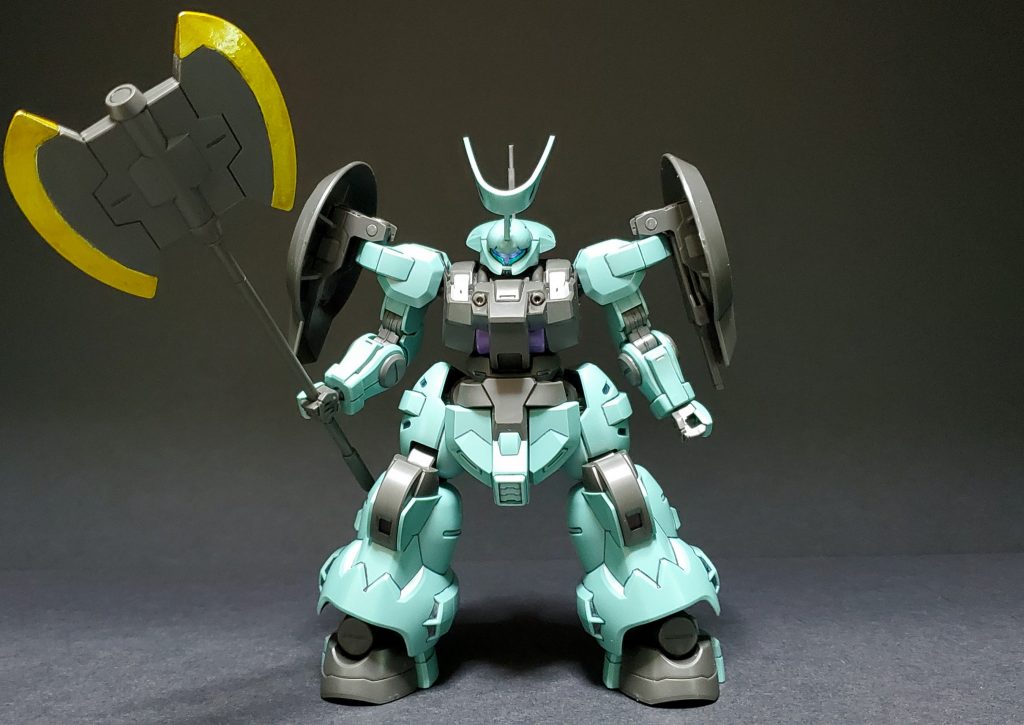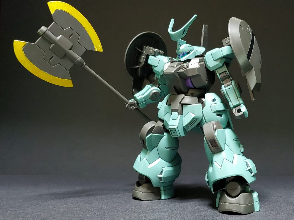 ラウダ専用機。専用のシールドや大型ヒートアックスが付き、角やバックパックが一般機とは異なります。