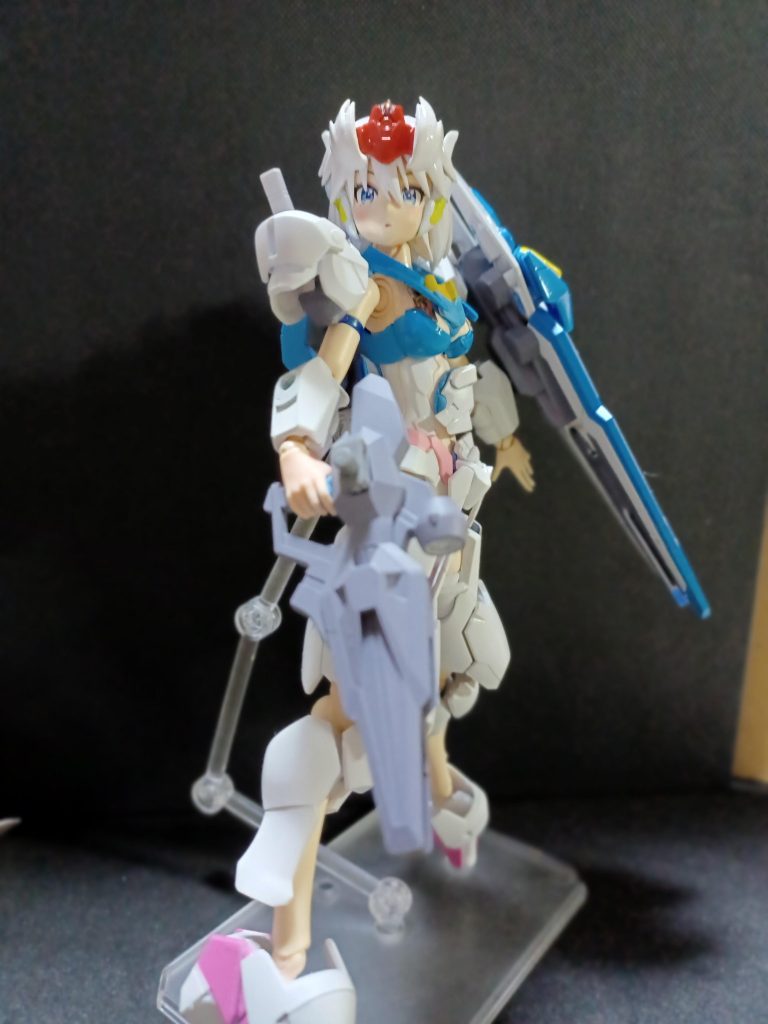 ピンヒール化しても自立出来ますが、流石にシールドとライフルを背中に付けると重心が後ろに行きます。