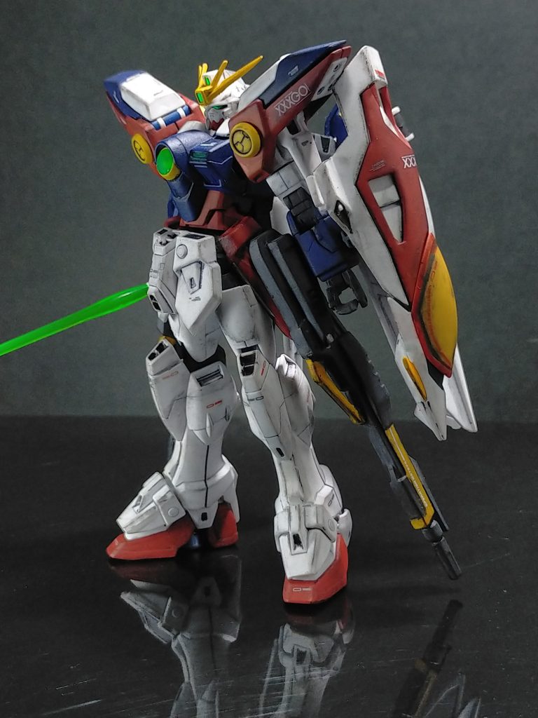ウィングガンダムはRGウィングガンダムゼロEWのガンダムデカールを利用。曲面が少ないからか張り付きも良い感じ。