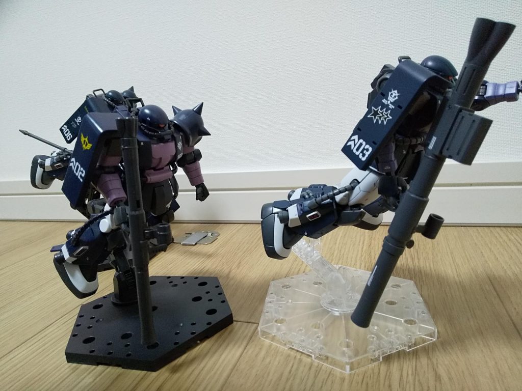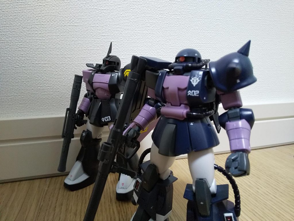 黒い三連星用ザク、HGUCとオリジンとで差はありますが、ガイア・オルテガ・マッシュと揃いました。