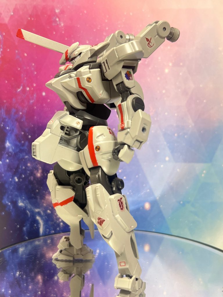 スタイル的には膝下の変更、腰部の延長、両肩の試作型アンビカー追加などでダリルバルデに繋がるデザインを意識しました。