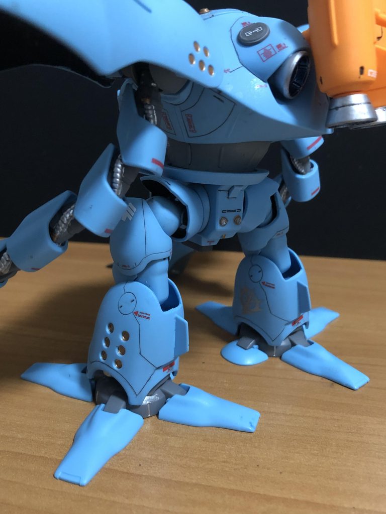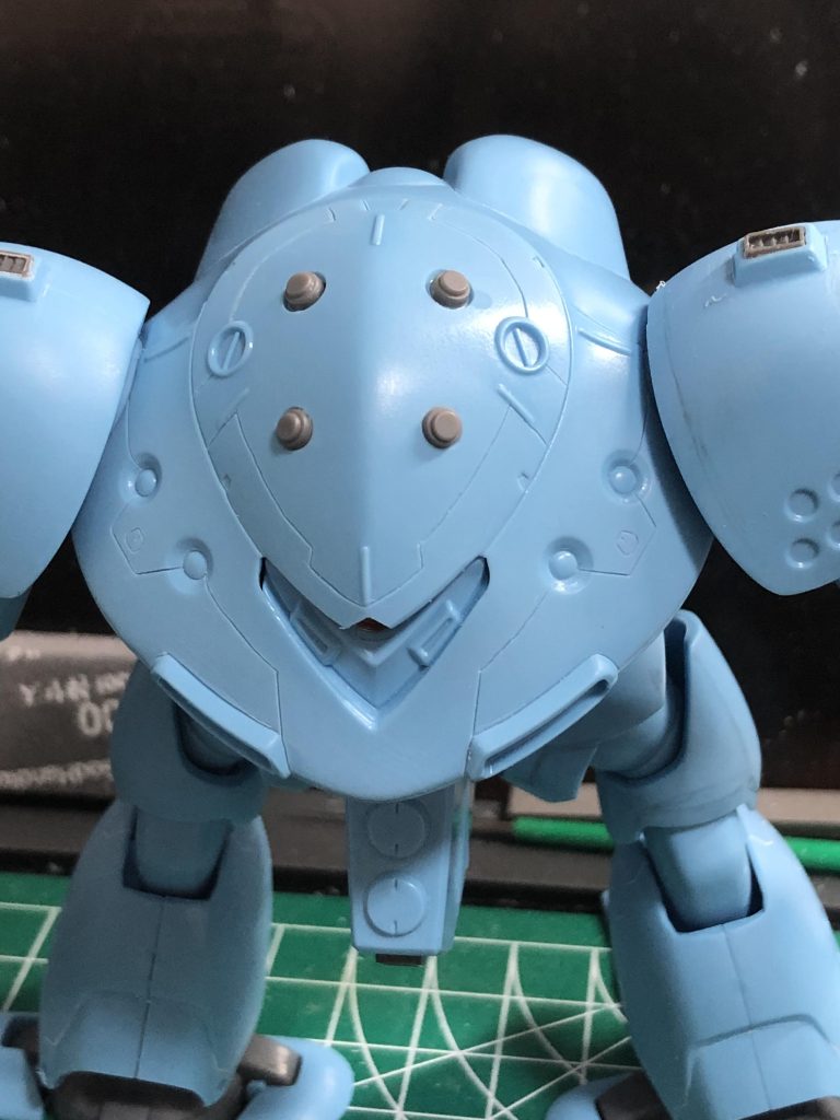 頭部下側のハッチ部分もかなり頑張ってスジボリしたのですが、ハイゴッグの構造的に下から見ることがないので無理矢理撮りました。