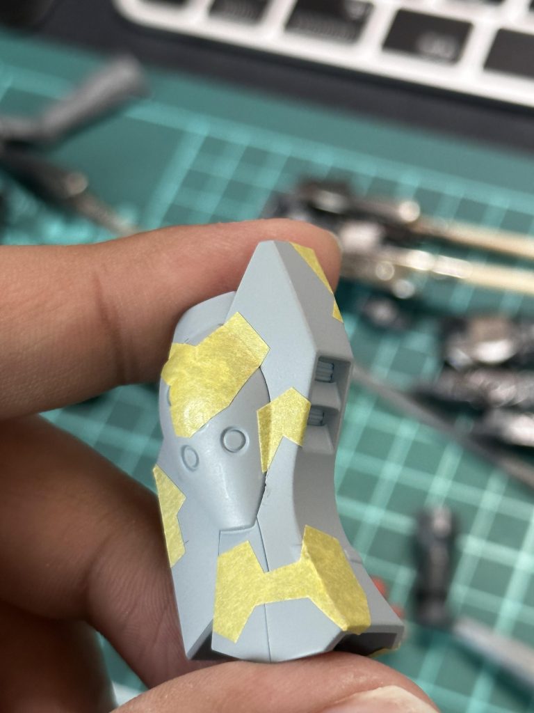 素体はそのままですが、マスキングを各所に施して直線的な迷彩パターンを作りました。