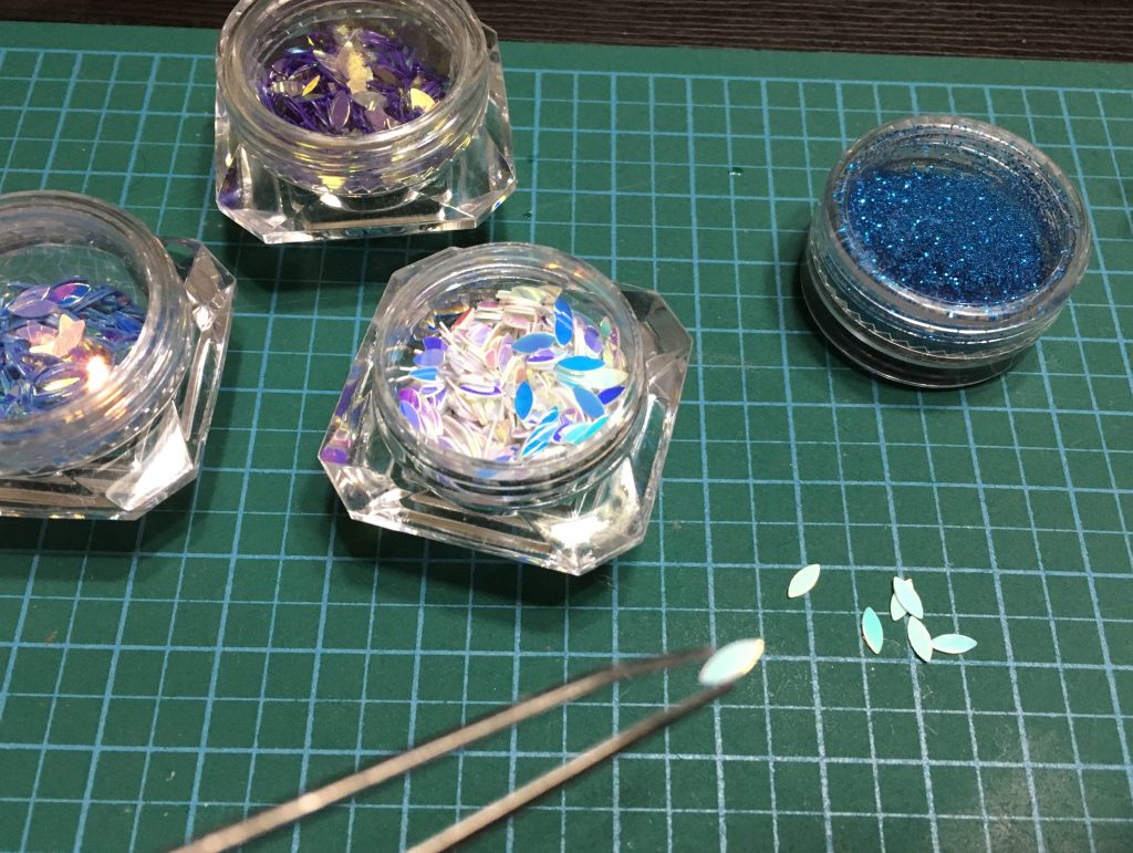 このラメチップ、こんだけ小さいので貼っていくのがめちゃ辛かったwww ちなみに海外から取り寄せました!