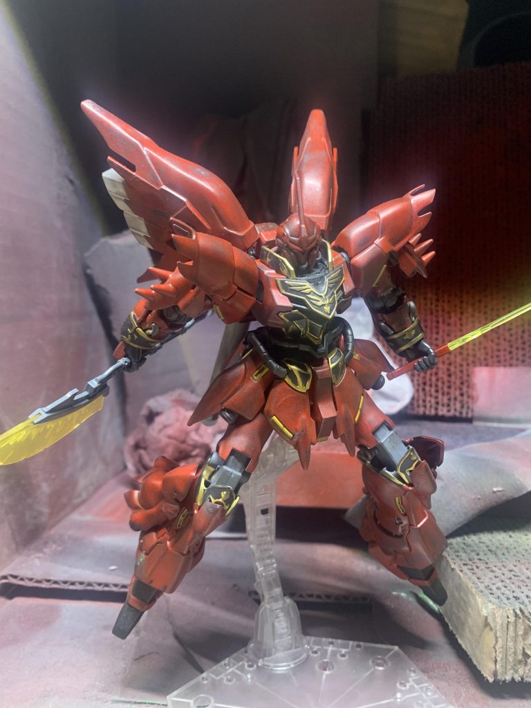 以前作成したRGシナンジュはマーカーで塗装していたので今回はスプレーでキャンディ塗装をしてツヤツヤのシナンジュを作成するのが目標でした。