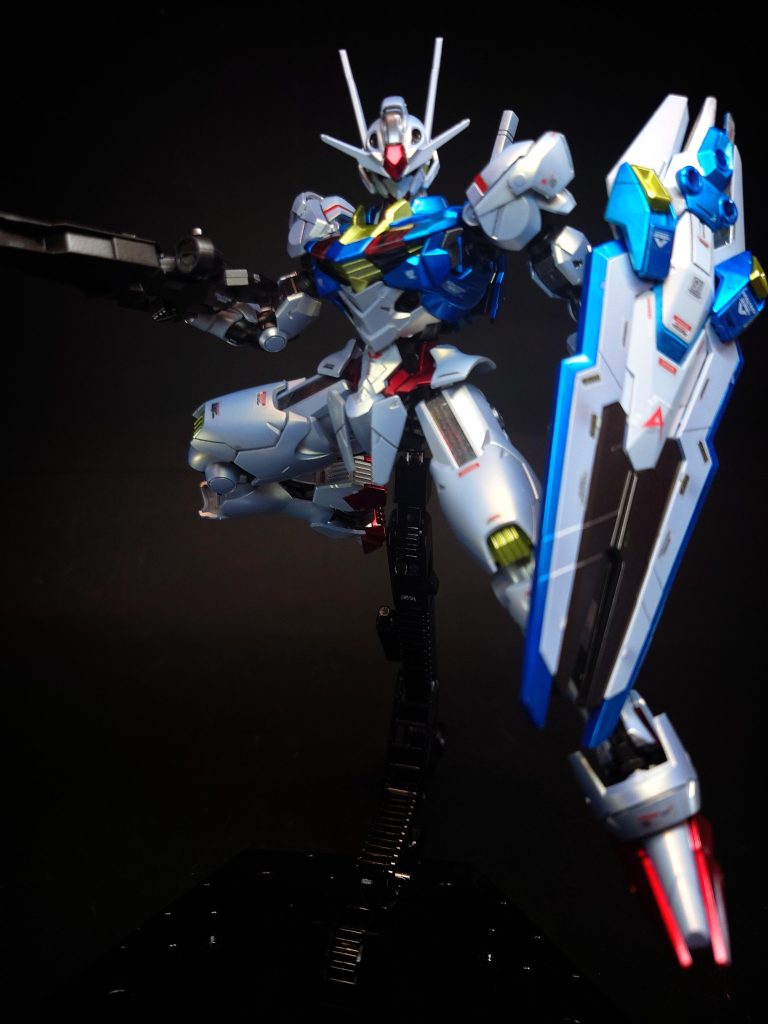 スレッタ・マーキュリーがアスティカシア学園にもち込んだMS。プロスペラがデリングへの復讐のために密造したガンダムであり[46]、当初はベネリットグループの追及をかわすべく、GUNDフォーマットの欠点であるデータストームを克服していることを根拠に、「従来のパーメットリンクをもとにした、水星開発のための新型ドローン技術を用いたMS」であると説明された[52]。学園で機体を管理する地球寮の整備員たちが感心するほど緻密で革新的な構造を有しており、スレッタが搭乗することで従来とは一線を画した性能を発揮する