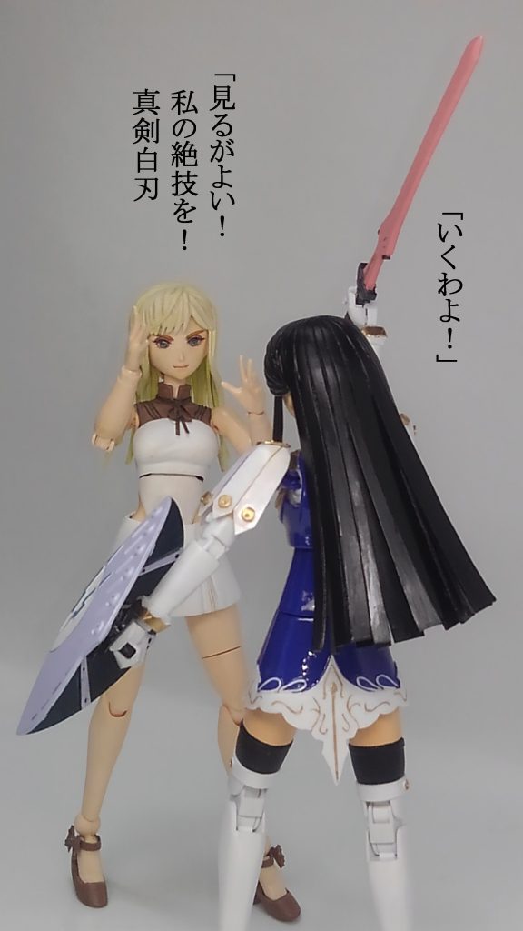 お褒め頂きうれしゅうございます。どうなることかと思いましたが何とか形になりました。ただ静の衣装はつや消しにするべきだったかな?と写真を見て思いました。もしくは半光沢。作ってる時は光沢が良かろうと決めてたんですが・・・。