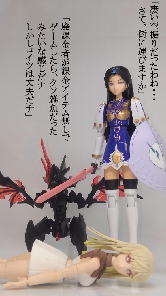 すーぱーふみなを改造して、ファイブスターストーリーズに登場する、ファティマ静を作成しました。合わせてSDダークグラスパードラゴンを作成しました。ドラゴンはパーツを少し組み替えてワイバーンっぽくプチ改造しました。