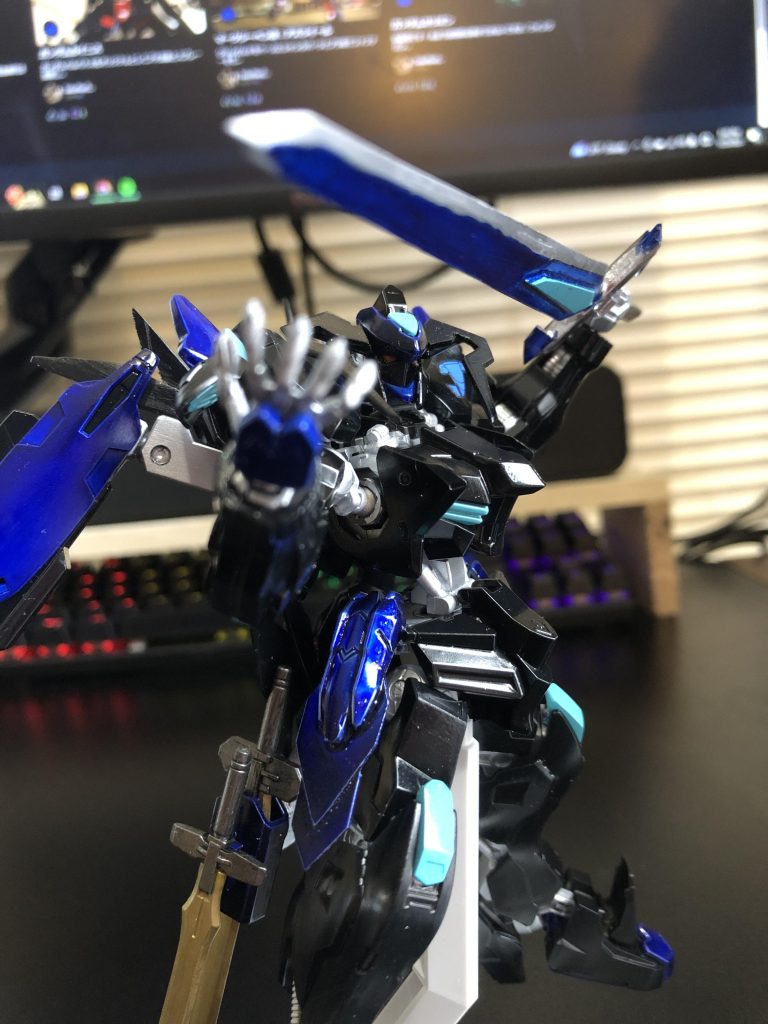 バエルの改造機、バエル・エル・ディアブロです。ザ、悪魔というコンセプトで、完全な悪役機です。いつも通りスプレー塗装で、細かい部分はガンダムマーカーで塗装しました。