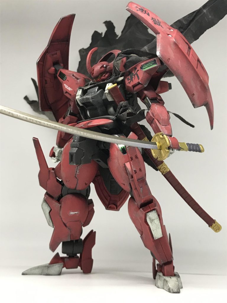 確かに武者っぽいダリルバルデですが、漢字デカールやマント、汚しにポージングで武者感倍増ですね!