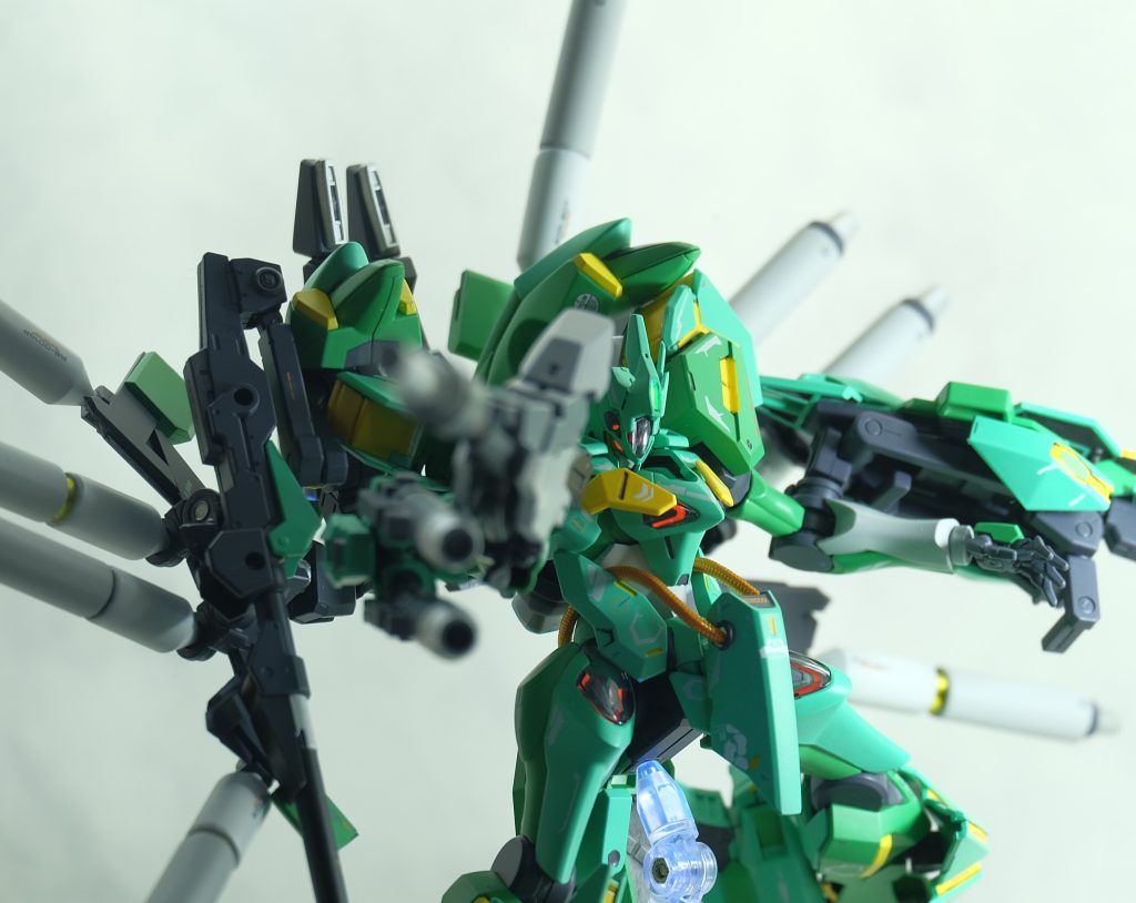背部のブースターにはサブアームと、ロングレンジキャノンを左右に一機ずつ。
