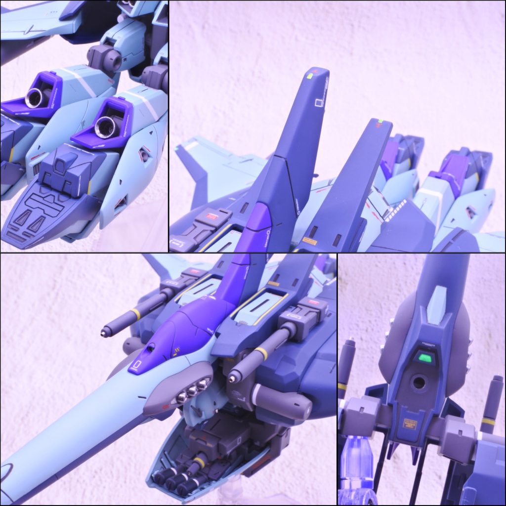 ![HGUC RGZ-91 Re-GZ(UNICORN Ver.)[頭部]・合わせ目消し・後ハメ加工と詰まり感解消のため、両サイドダクト部の内側を削り込み・バルカンを開口し、HI-QパーツEZガンマズルシルバーショート1.0mmでディテールアップ・顎パーツを削り込んでシャープ化・頭頂部前後のセンサーはクリアパーツを自作(透明ランナーから削り出して整形)し、クレオス蛍光グリーンで裏打ち[胸部]・合わせ目消し・スジボリ追加・ダクトのスリット部にwaveモールドプレートでフィン状構造を表現・コクピットハッチにプラ棒(角)でディテールアップ[バックパック]・スジボリ追加・ビームサーベル収納部のハッチをプラ棒(角)でディテールアップ・テールスタビライザーの先端に自作クリアパーツを取り付け[肩部]・フレーム、外装の合わせ目消し[腕部]・前腕の後ハメ加工、合わせ目消し[腰部]・各スカートアーマーにスジボリ追加、一部プラ棒(角)でディテールアップ[脚部]・太腿フレームパーツの合わせ目消し・膝パーツにスジボリ追加し、自作クリアパーツを取り付け・正面中央パーツのアポジモーターはピンバイスで数ミリ掘り込み、HI-Qパーツツインパイプ2.0mmを取り付け[ビームライフル]・合わせ目消し・銃口にHI-QパーツEZガンマズルシルバーショート1.0mmでディテールアップ・銃口上部の突起をピンバイスで掘り込み、クレオス蛍光ピンクで裏打ちしたHアイズ3クリア1.0mmを取り付け・サイトのスリット部にクレオス蛍光グリーンで裏打ちした自作クリアパーツを取り付け[シールド]・スジボリ追加、プラ棒(角)でディテールアップ[B.W.S]・プロペラントタンクの合わせ目消し・各砲口部にHI-QパーツEZガンマズルシルバー(機首メガ・ビーム・キャノン:レギュラー2.0mm、両サイドビーム・キャノン:ショート1.3mm)でディテールアップ・上面スタビライザーの先端と機種下部台形モールド部に自作クリアパーツを取り付け・左右翼端灯をクレオス蛍光グリーン、蛍光レッドで裏打ちしたHアイズ4クリアに置き換え[ダミーバルーン]・コクピットカラーを赤から本体パープルへ変更[カラー]・本体ライトブルー クレオスエアスペリオリティーブルーをベースに調色・本体ダークブルー クレオスネイビーブルーをベースに調色・本体パープル クレオスパープルとクリアブルーをベースに調色・本体イエロー クレオスキャラクターイエロー・関節グレー クレオスグレーバイオレット・武器グレー クレオスガンダムカラーMSグレージオン系・武器ネイビー クレオスネイビーブルーをベースに調色・ツインアイ、センサー クレオス蛍光グリーン・バーニア、スラスター、ビームライフルの一部 ガイアスターブライトシルバー ※バーニアとスラスターは下地にクレオスブラックを使用・墨入れ タミヤスミ入れ塗料ブラック タミヤエナメルブラック タミヤエナメルフラットホワイト・各部装甲裏(組立後に目立つ箇所) タミヤエナメルジャーマングレー・本体トップコート クレオススーパースムースクリアつや消し・ツインアイトップコート クレオススーパークリア3・サーフェイサー クレオスフィニシングサーフェイサー1500グレー、ホワイト[デカール]・アクセント程度にガンダムデカール、汎用デカール(ベルテクス、クラウドイレブン)を貼付け](https://gumpla.jp/wp-content/uploads/2023/02/9540E605-DA84-4E32-A88B-DFE46EA984CD-1024x684.jpeg)