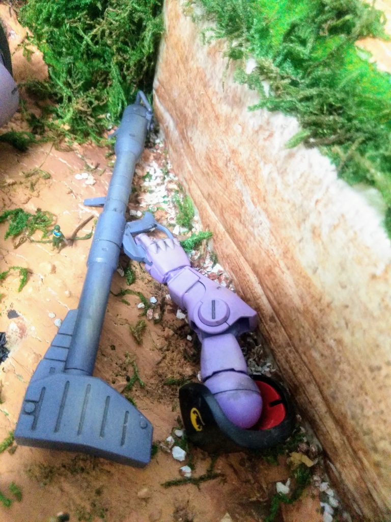 ちぎれてしまったドムの腕。兵士のフィギュアはサムソントレーラーとザクタンクの付属品。