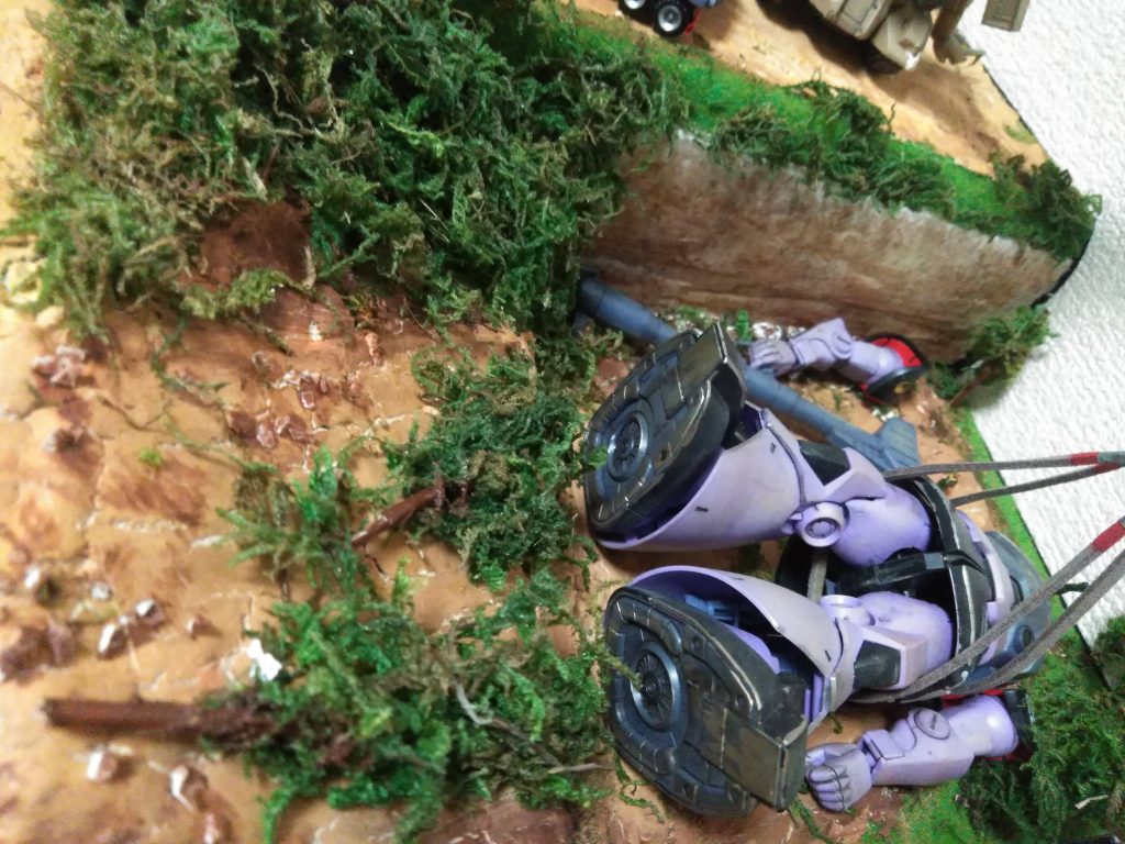 行動不能となったのはドム。断崖へ転落、地形を考慮しクレーンによる回収作業を行うはこびとなった。