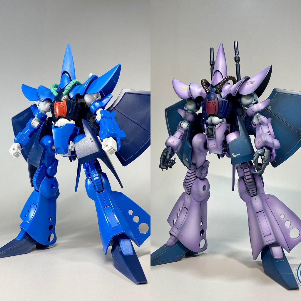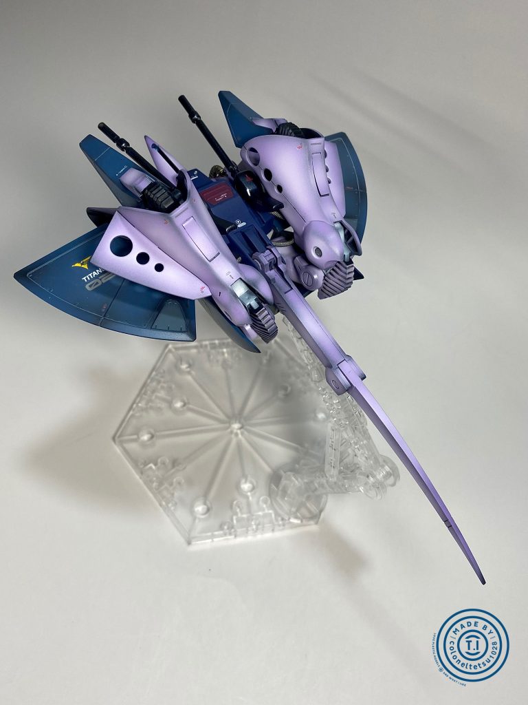 黒背景ではキュベレイカラーぽく、白背景では薄ピンク/紫ぽく見えて、ガザCぽさが感じられる為、アクシズ系な雰囲気に見えてきました。