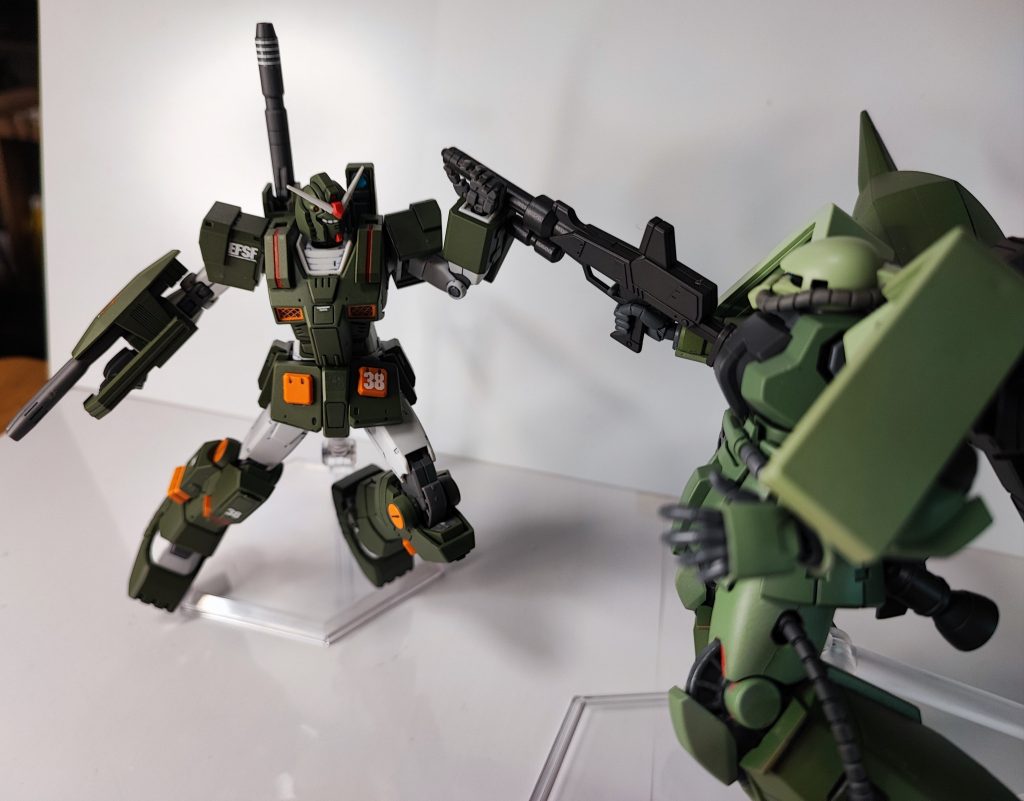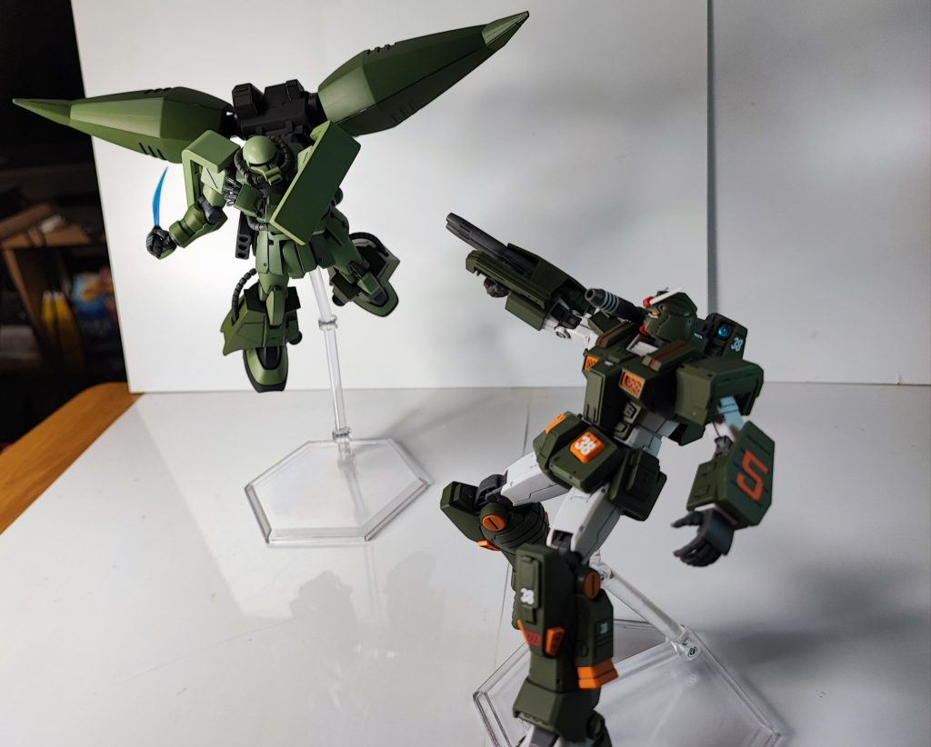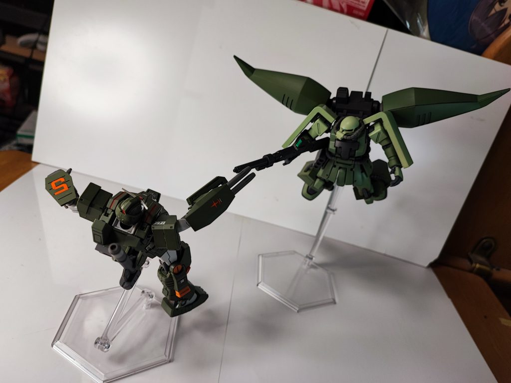 失礼します。完成お疲れ様でした。 『スタティックディスプレイ』イッパイくっついている兵器だと、とっても見栄えいいですよね。前作ザクとのブンドドも妄想が捗ります。