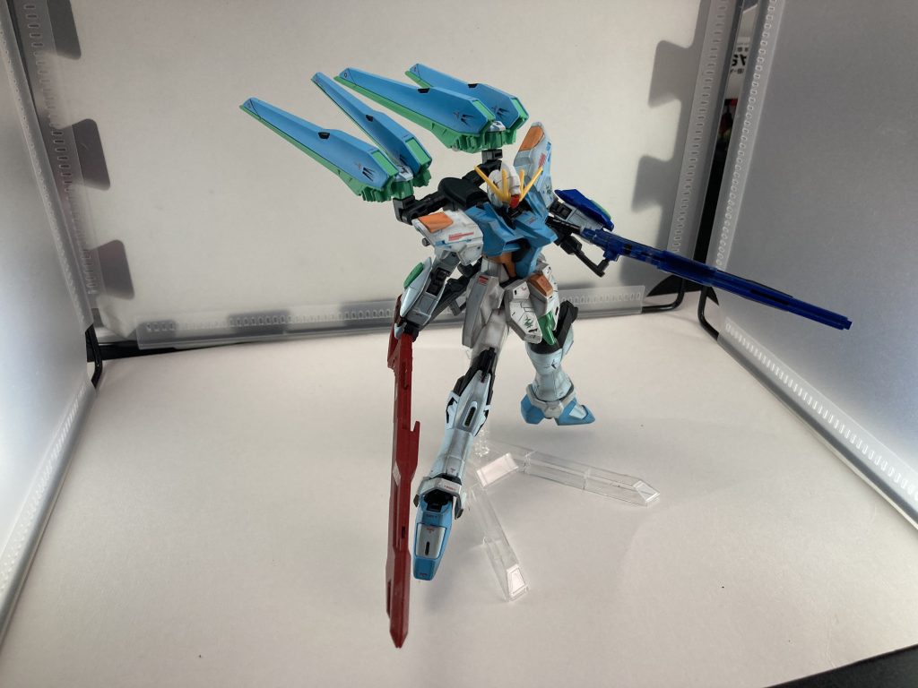 最初はサーペントテールがストフリの余剰・予備パーツを極秘裏に回収してくみ上げた機体とかいう構想だったので、セカンドLみたいな色合いになってます。