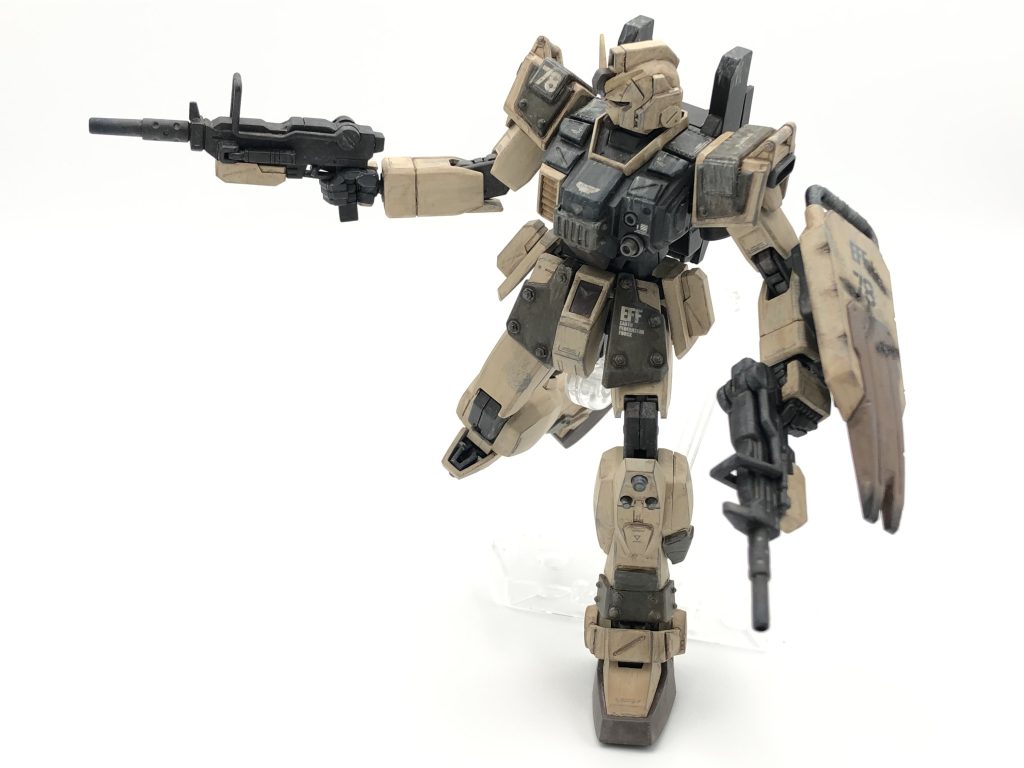 ミサイル、ガトリング、そして火力は正義ですね!使い込んでる感じを目指して塗装したので、そこを感じてもらえたなら嬉しいです(gandam-hand2)