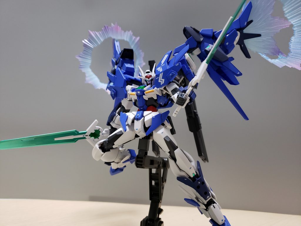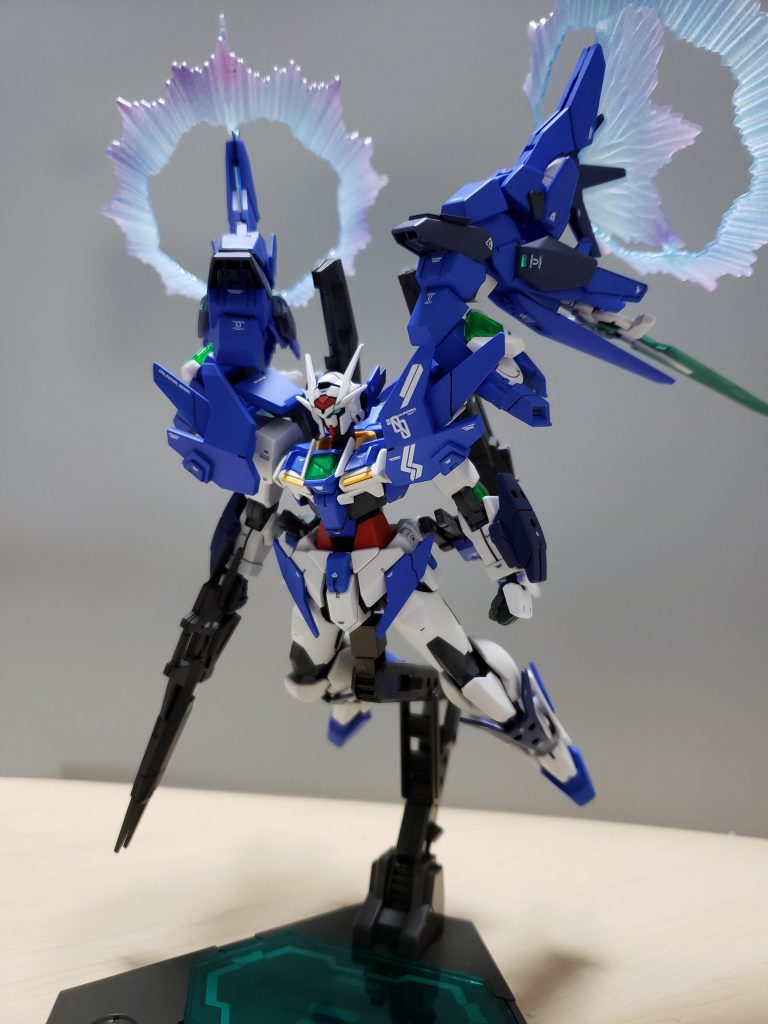 GNドライヴは僕が好きな縦長スラスタータイプに変更、トランザムインフィニティー発動状態が予想以上にでかくなってしまいました(笑)
