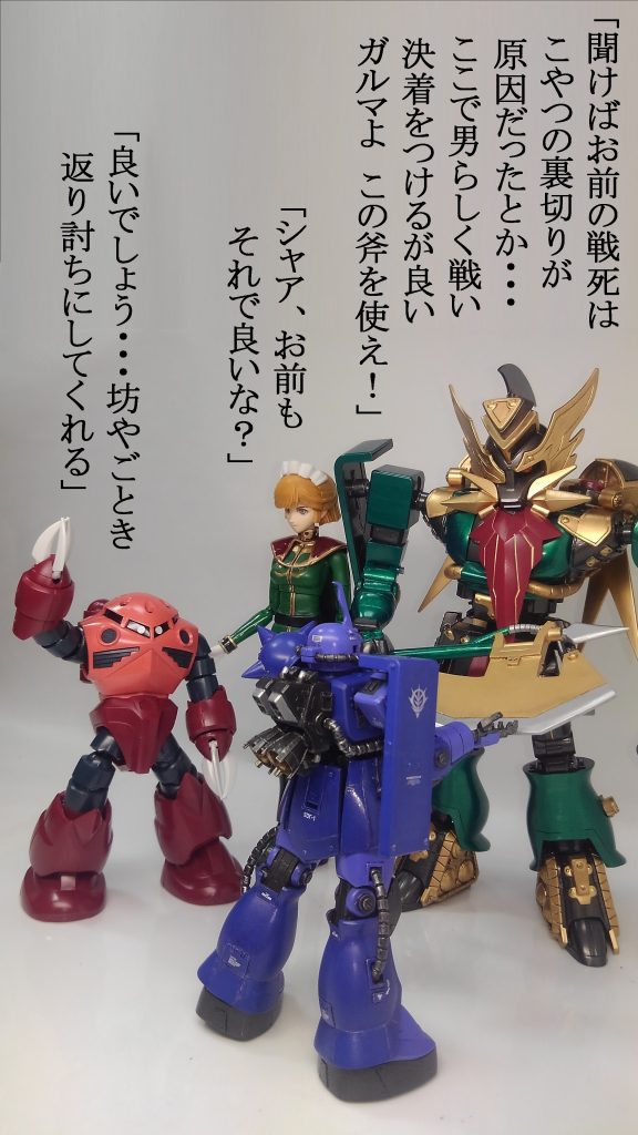 今度は、ガルマがウィスキーを片手に落ち込みそうだけど、シャー復活後は仲良くなりそうですね(smile)
