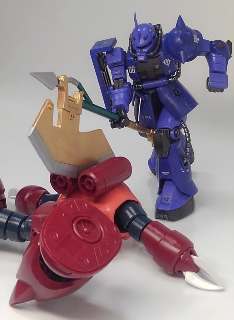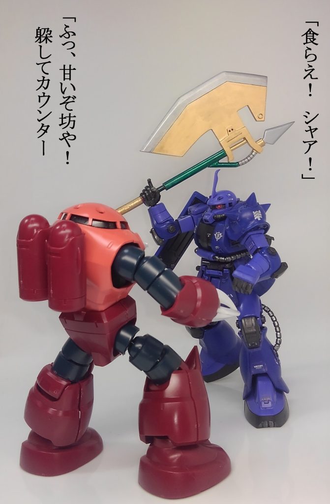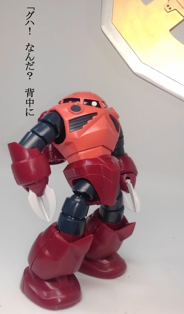 おっとお目が高い。シャアズゴックのやられた姿を日本一設定していると自負する私には、あの足の角度が重要なのです。何度もやり直しましたw