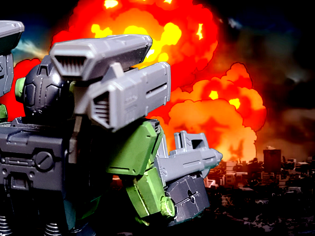 武装はブルパップマシンガン、ヒートナイフ、ハイパーバズーカ、肩部ミサイルランチャー。