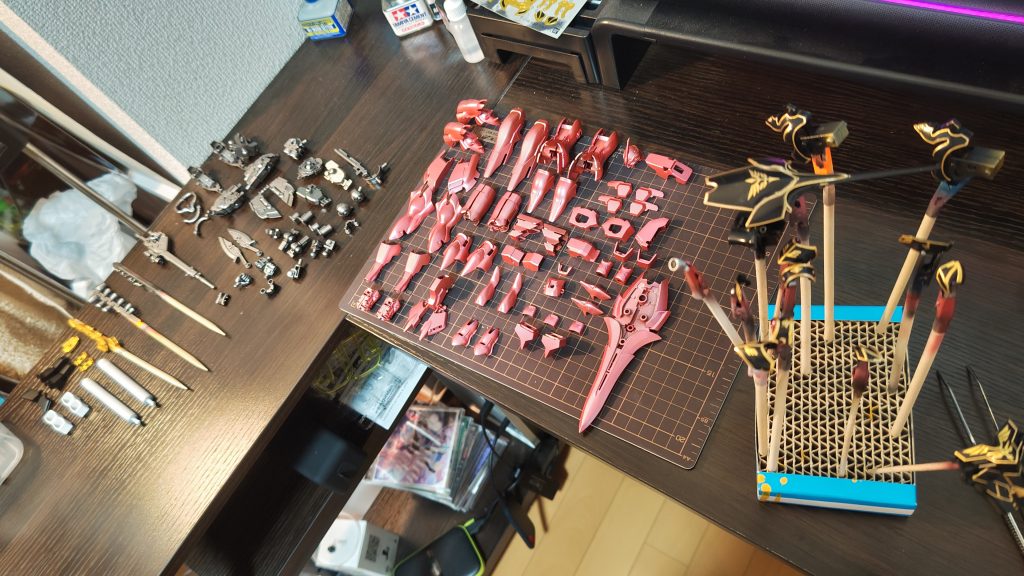 下地は安定のEXブラックから外装ピンクは調色が出しました!