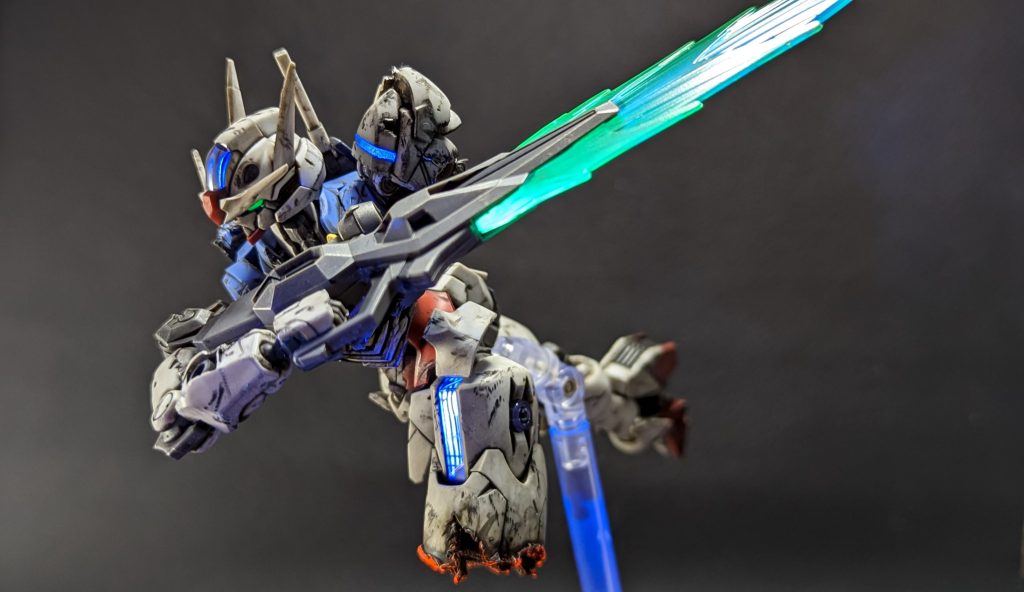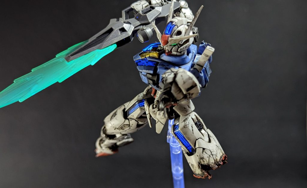 今回はダメージ加工とウェザリングで仕上げました。ミカエリスとの戦いによって大きく破損した脚部ははんだごてで溶かすことで再現しています!