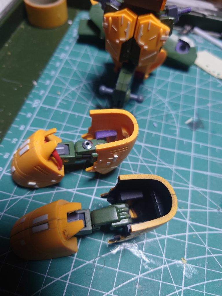 変形の時にチラ見になる胸部内部は適当に プラ板 貼って塗り分け