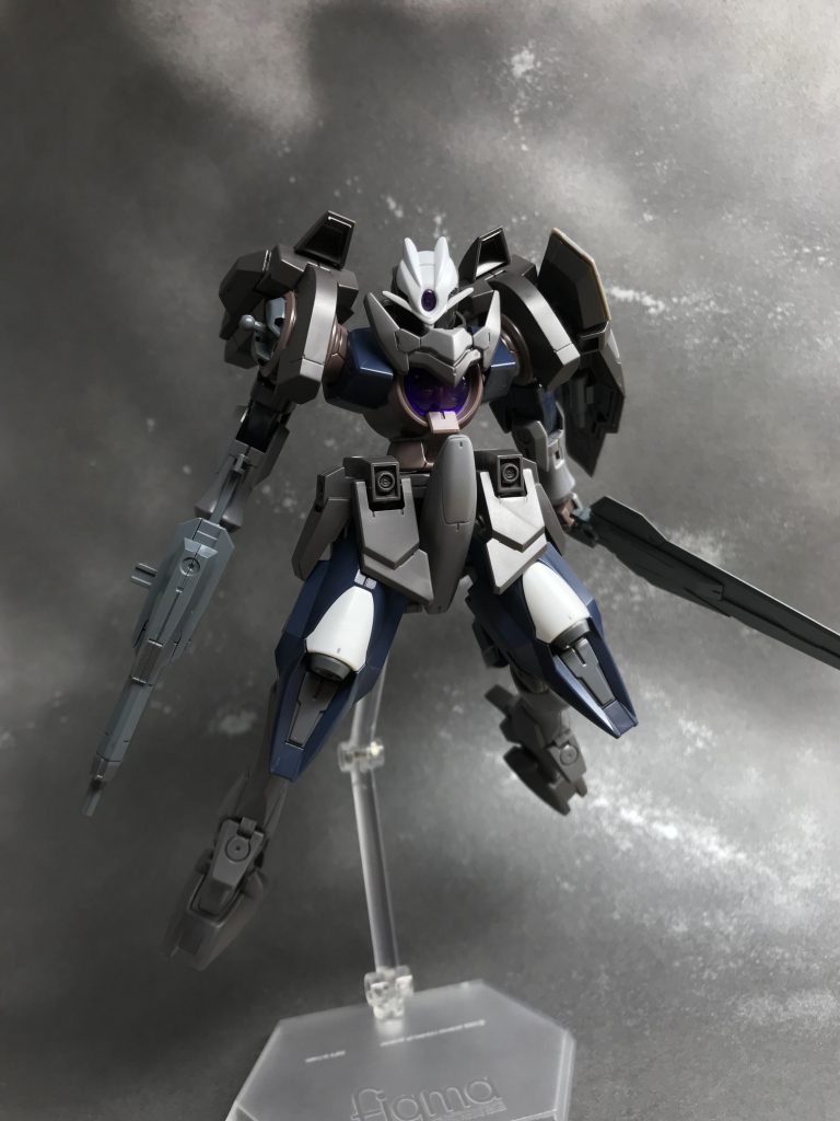 バックパックのGNシールドは展開する事で機体の周りに球体のGNフィールドを発生させ、全方位ガードによる高い防御力を誇る